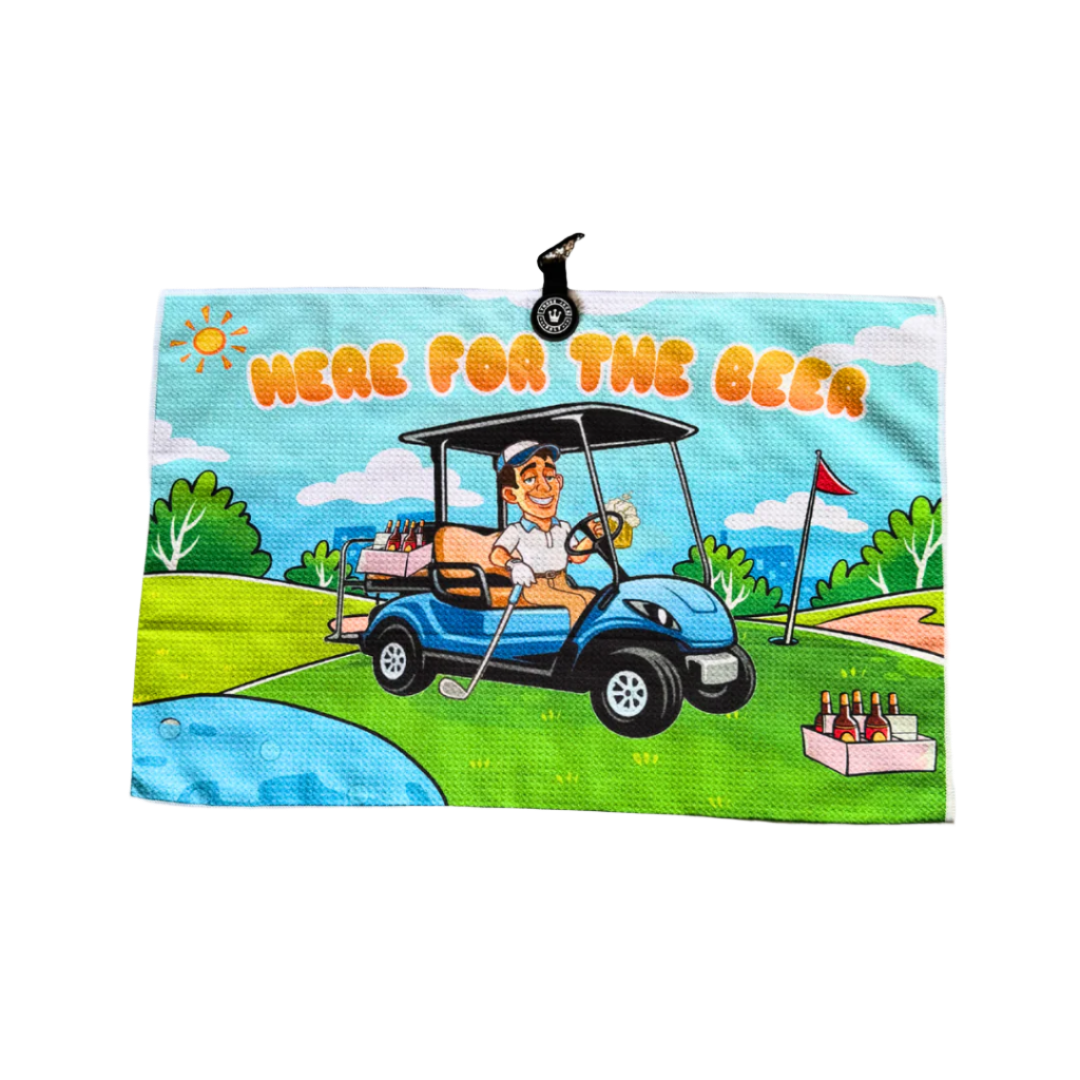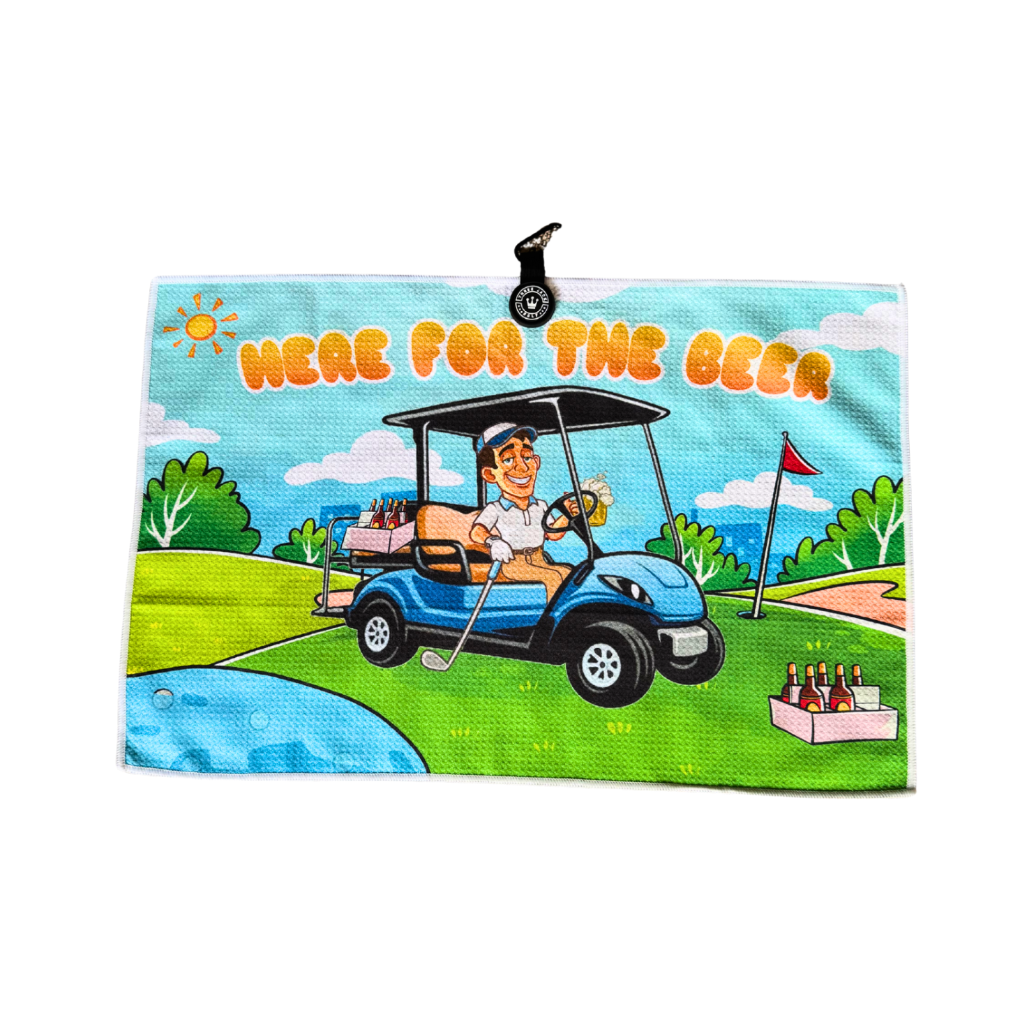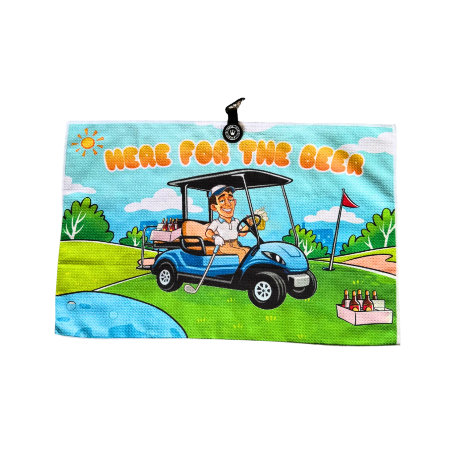 Introducing our "Here for the Beer" golf towel — the perfect blend of fun and functionality for golfers who love to keep things light-hearted on the course. This towel not only adds a splash of humour but also delivers top-notch performance.